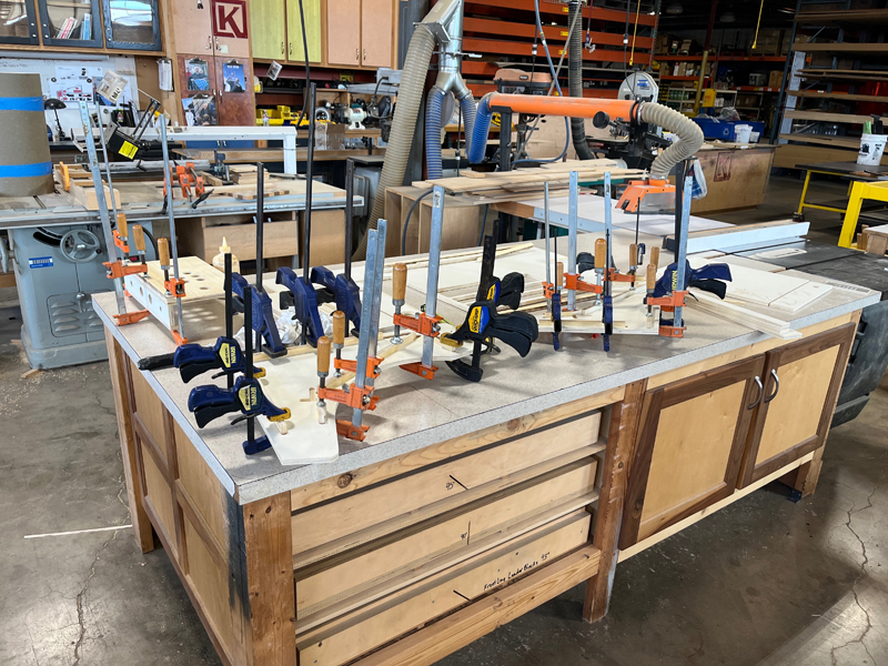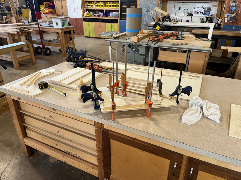 Once the box and control panel were glued up we checked the fit of the hinged and removable parts: