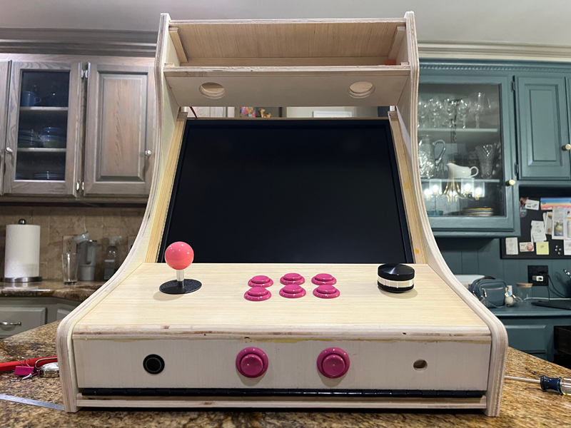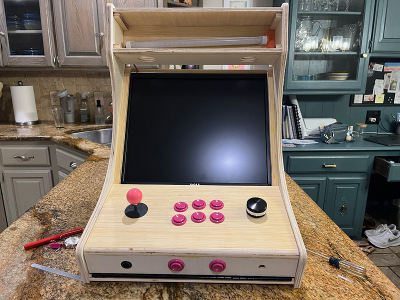 We are finally building the Kittycade! We routed out all the parts on the CNC router table and got busy with the glue up: